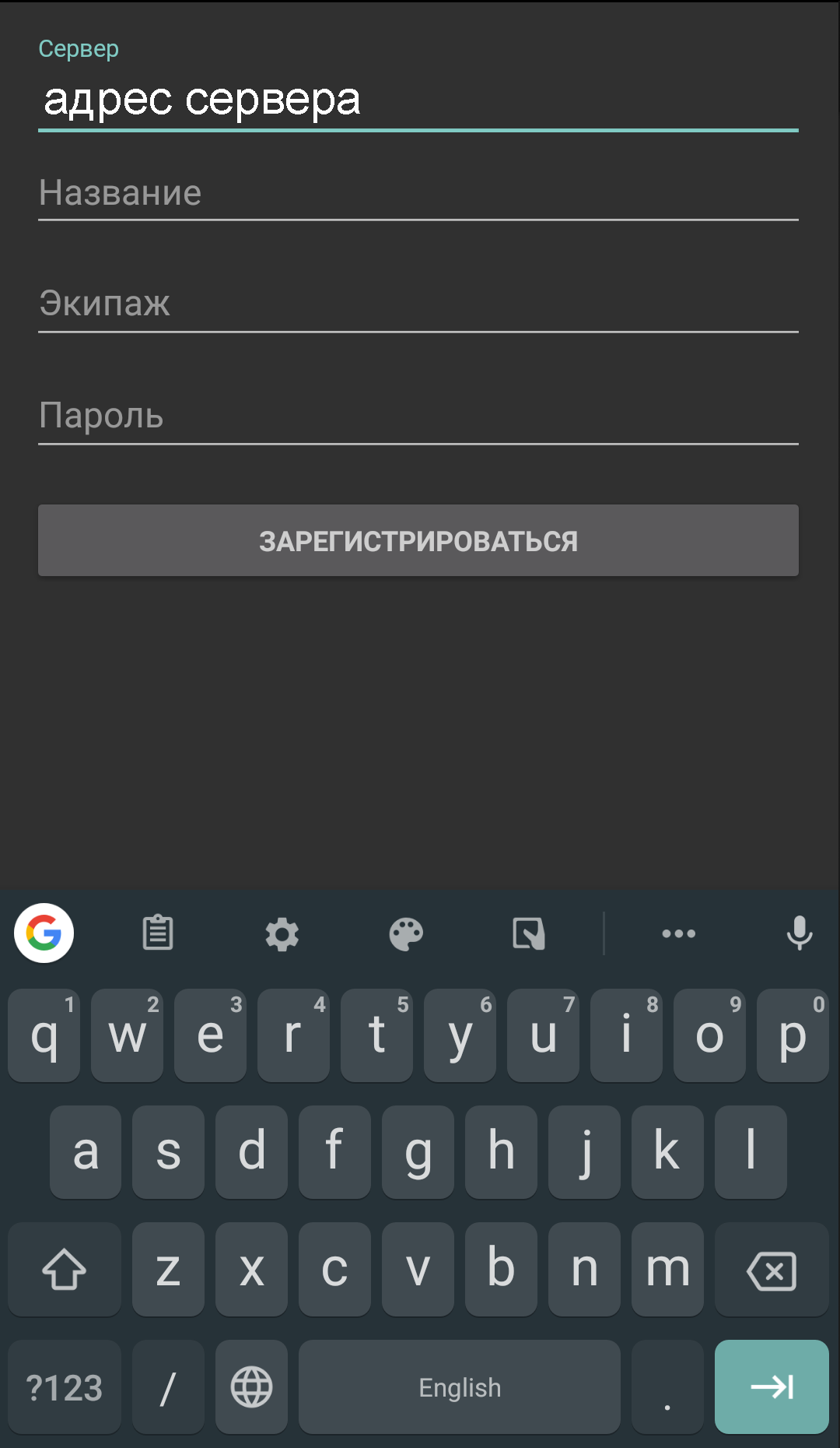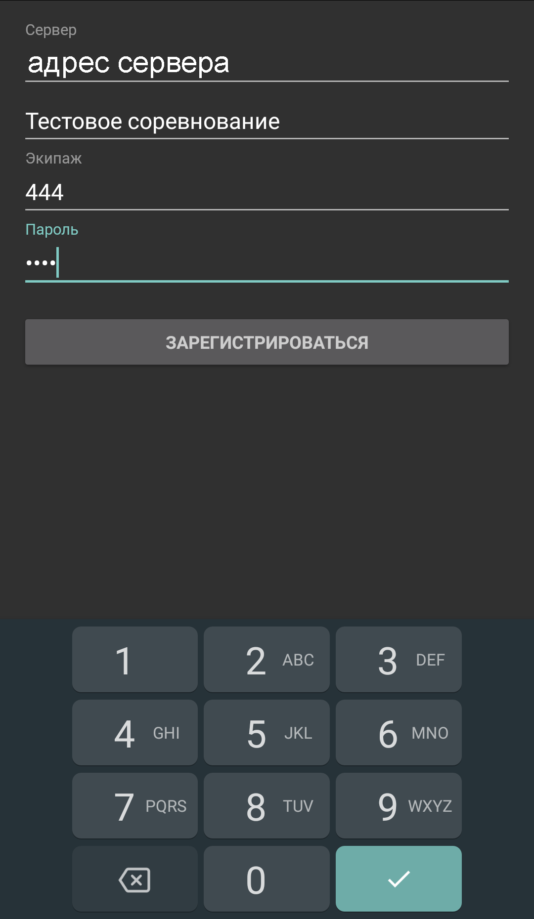 Название соревнования должно появиться само. Это признак того, что вы все делаете правильно. Введите номер экипажа и пароль, полученный от организаторов, нажмите "зарегистрироваться".
