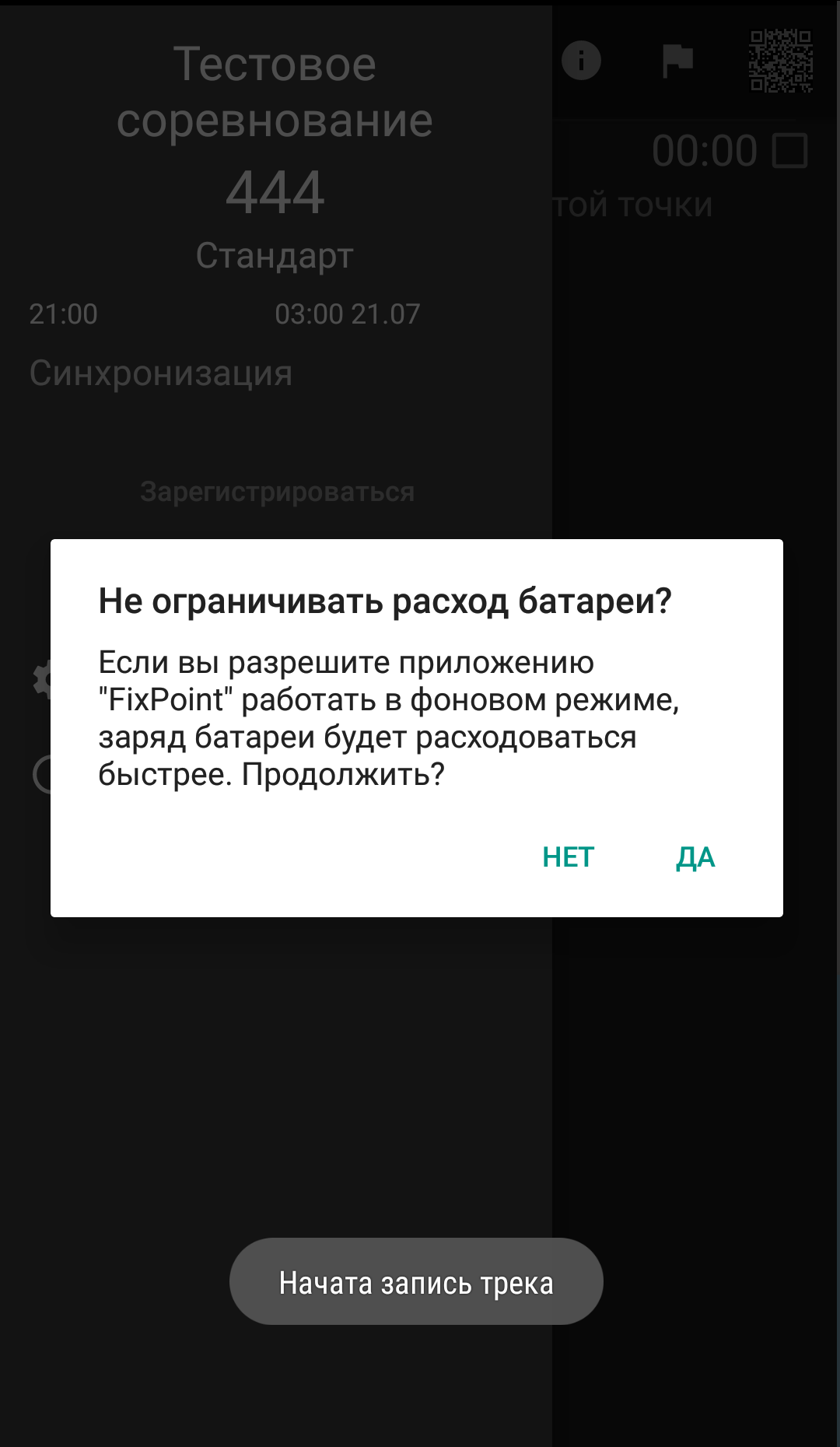 Подготовительный этап завершен. Программа установлена, QR коды корректно считываются. Можно приступать к регистрации. Помните, что сразу после регистрации программа начнет писать ваш трек и передавать его на сервер, что расходует батарею, соответственно рекомендуется это делать незадолго перед стартом.