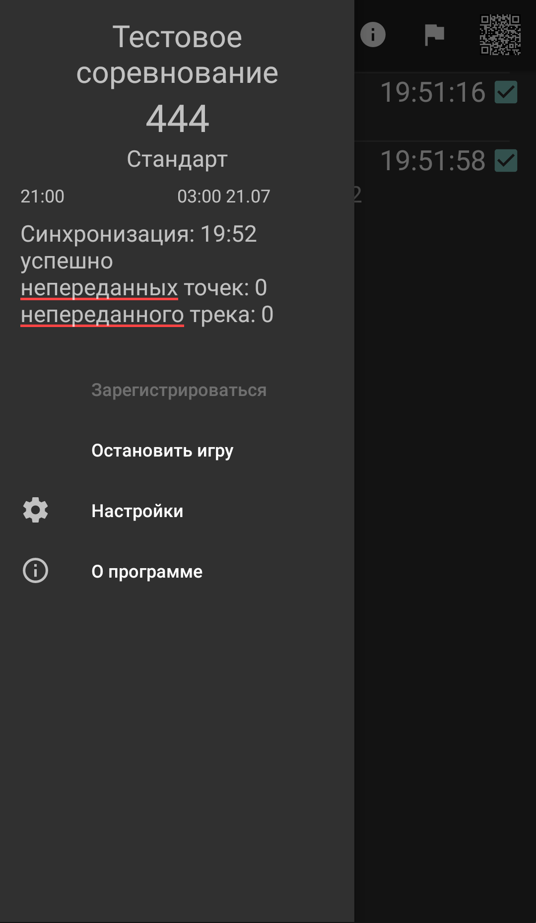 Здесь мы видим, что успешно взято 2 КП, но информация об одном из них еще не отправилась на сервер. Беспокоиться не нужно - информация отправится, когда у вас будет нормальное соединение с интернетом. Если вы хотите синхронизировать взятые КП принудительно, проведите по экрану сверху вниз.