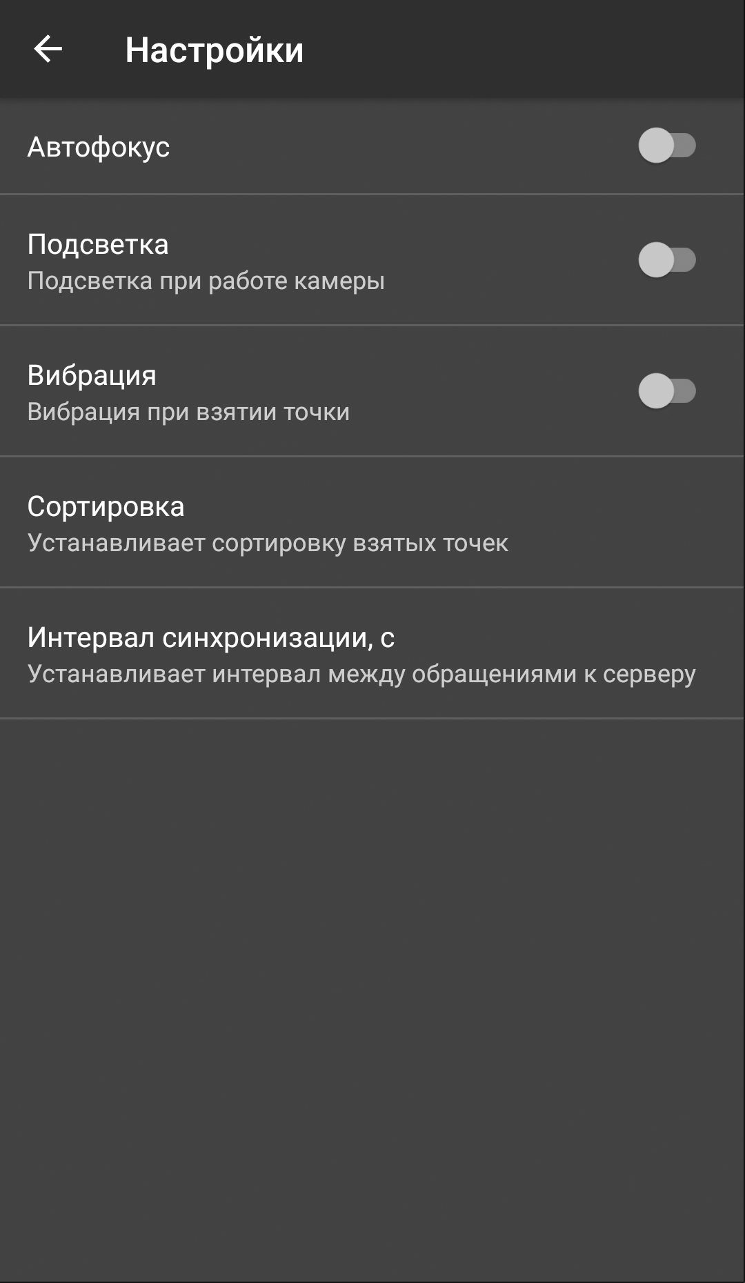Внизу вы увидите две кнопки - "автофокус" и "подсветка". "подсветка" включает вспышку на устройстве и поможет взять точку в условиях плохой видимости. "автофокус" может работать не на всех устройствах.