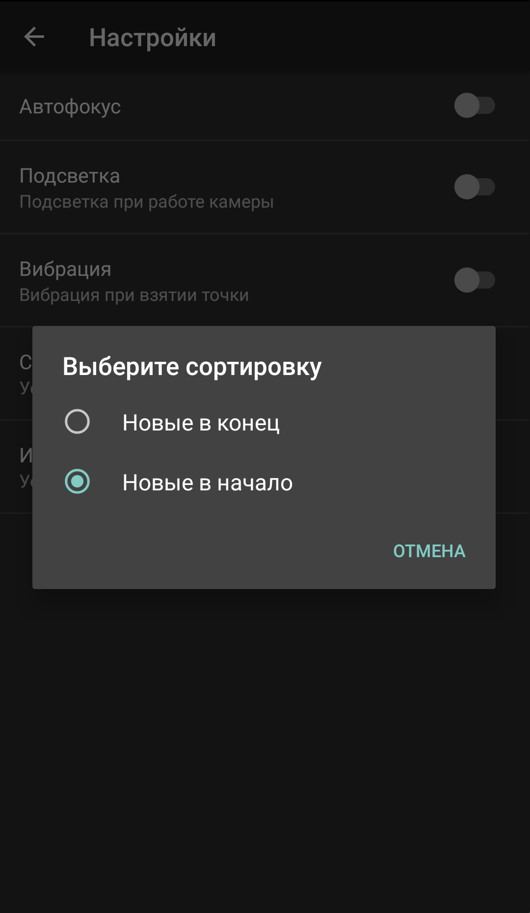 Очень удобный пункт настроек - настройка сортировки взятых точек.
